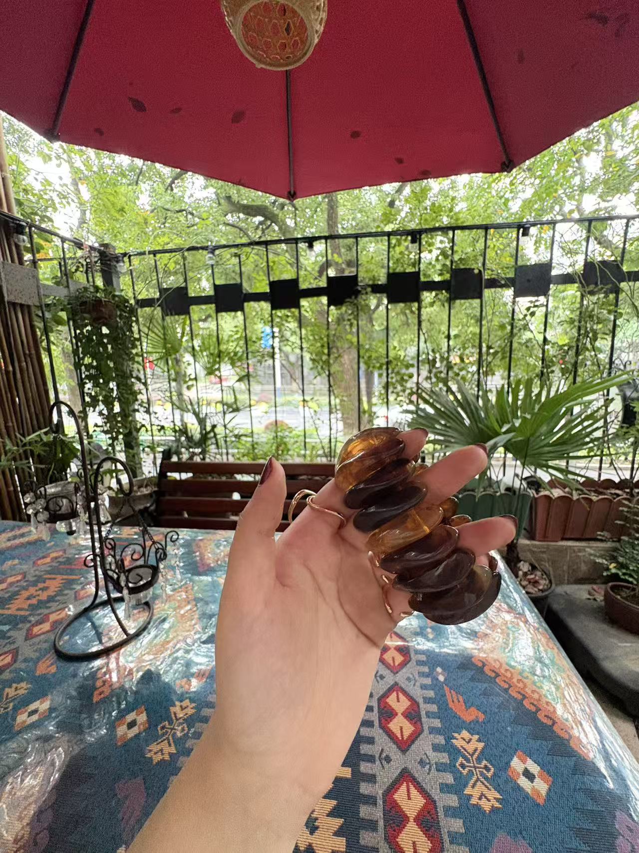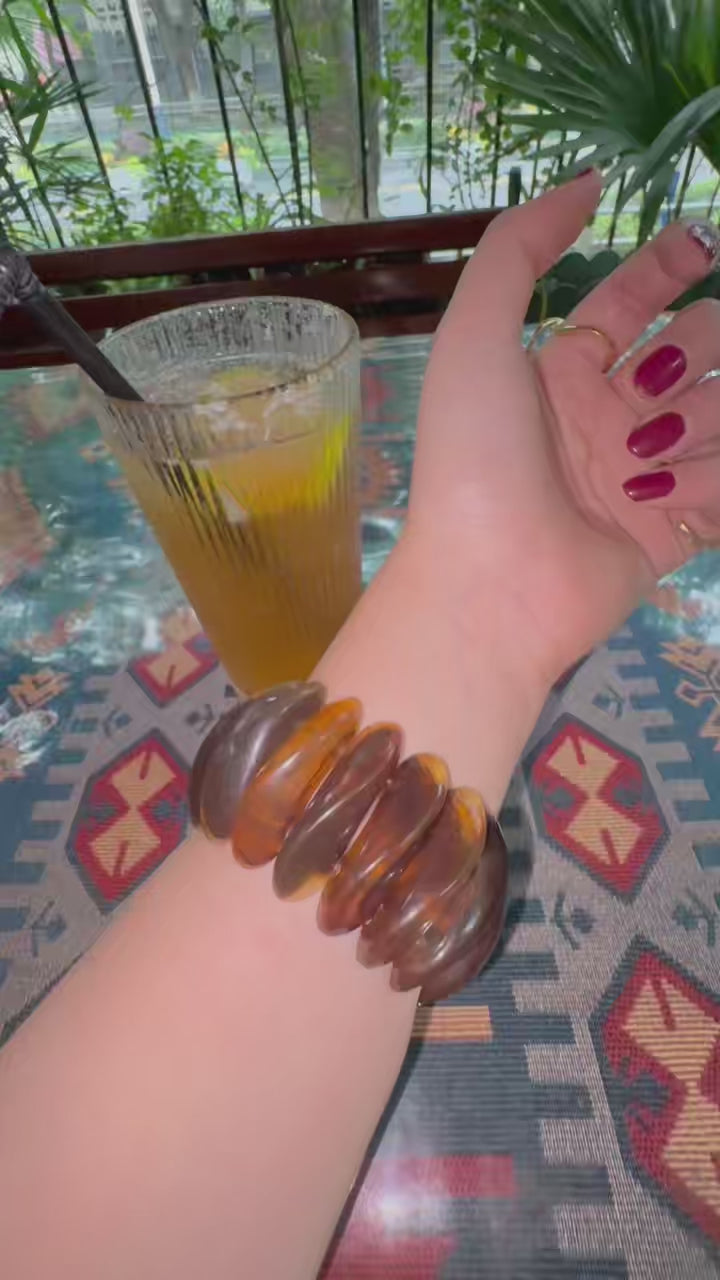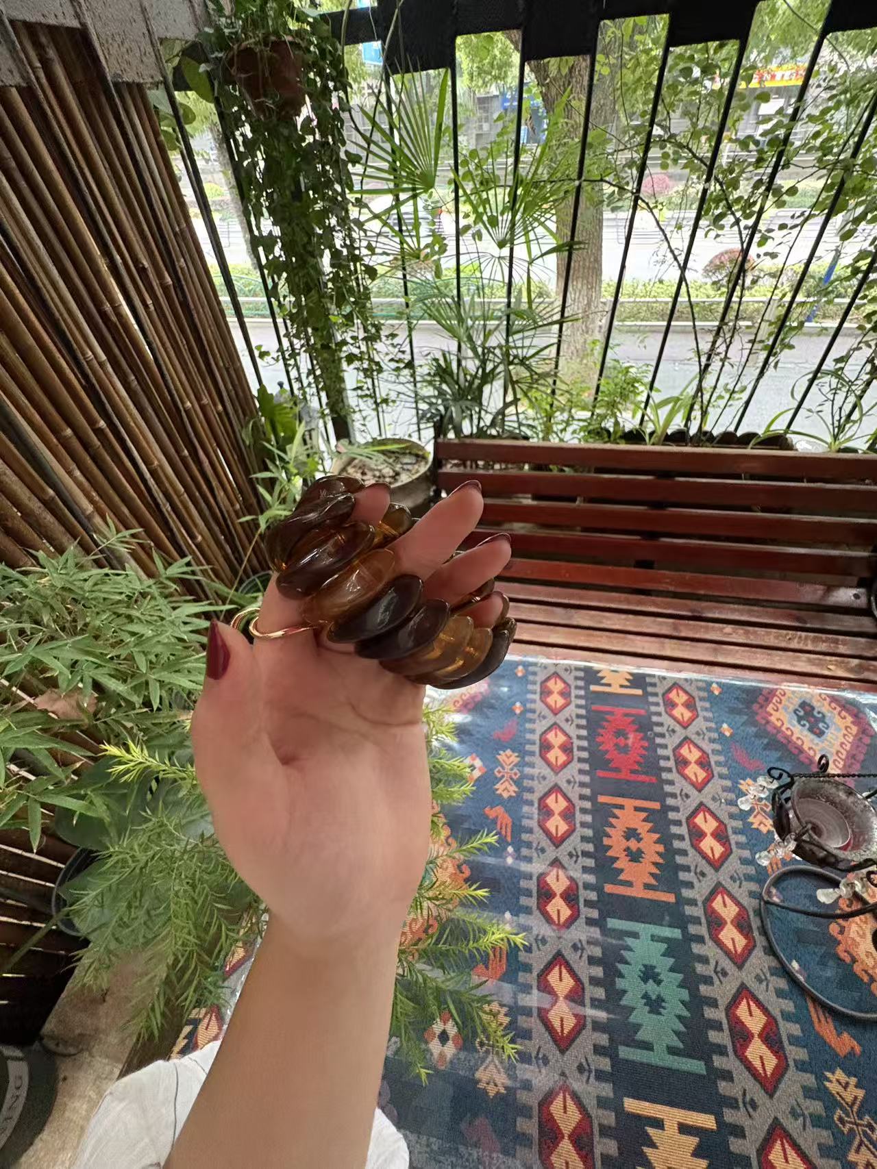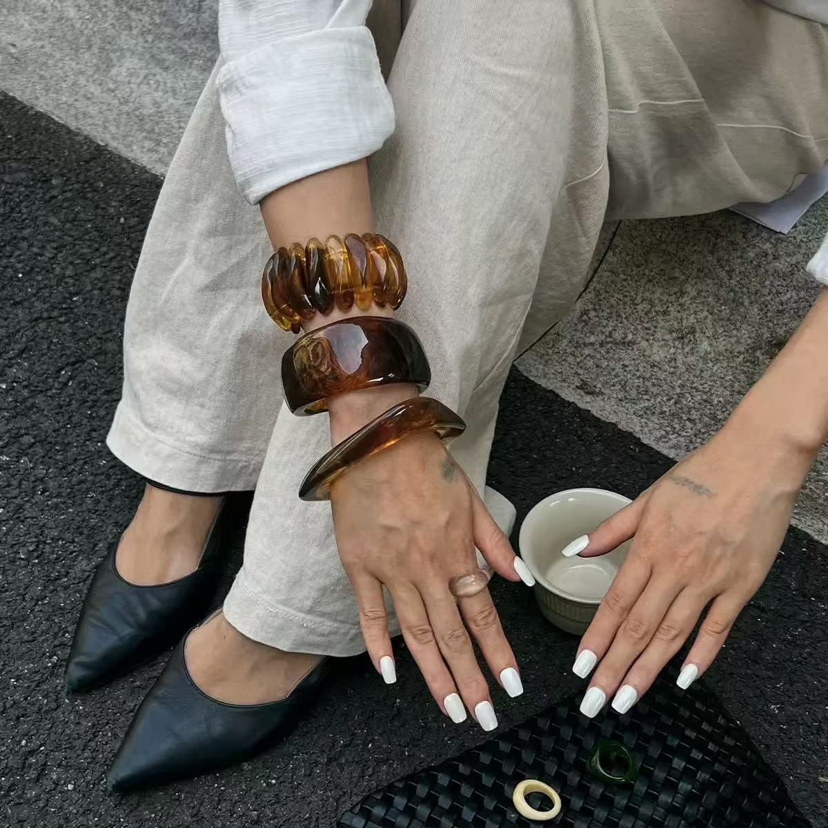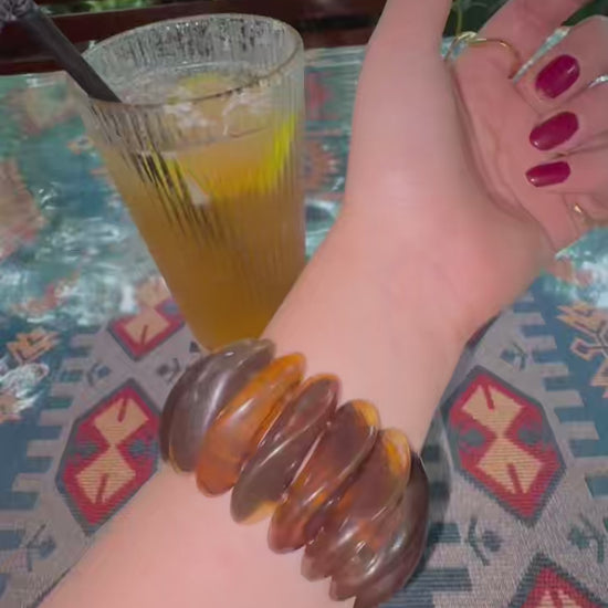 Chunky amber-toned resin bracelet, its glossy curved links add warmth and boldness to any look.