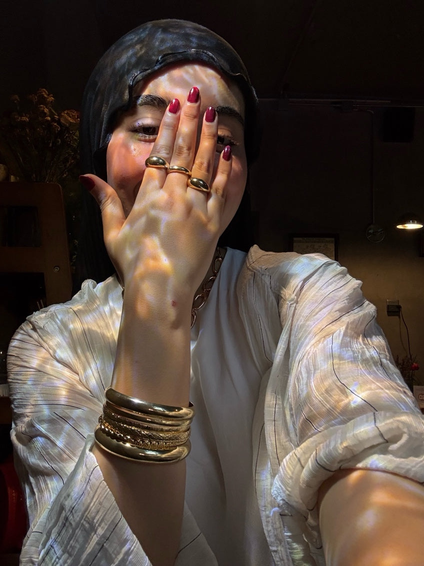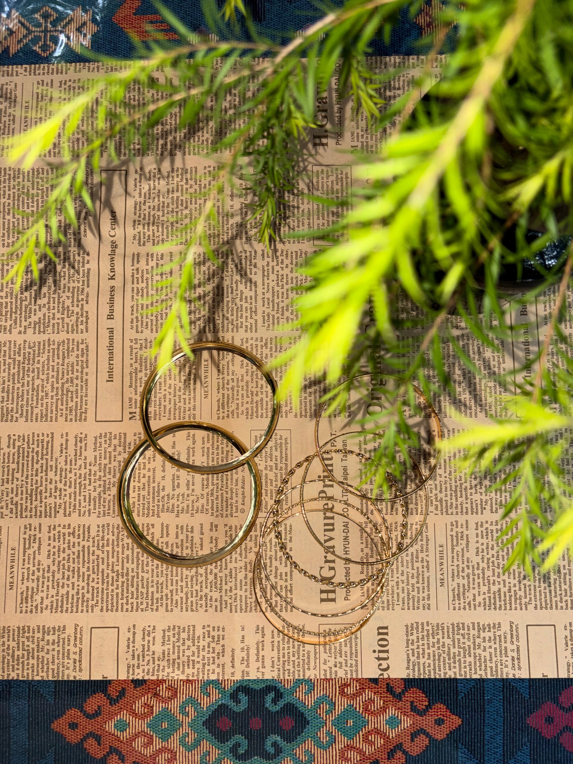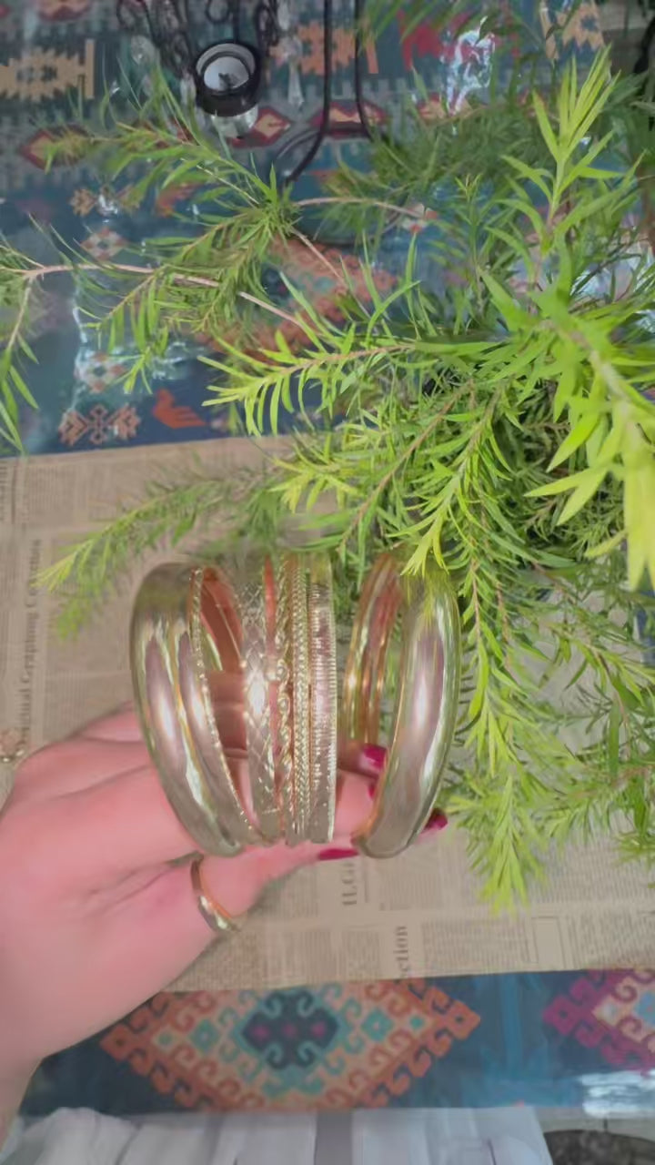 A radiant set of 8 gold-plated bangles featuring a mix of smooth, twisted, and etched finishes. Perfect for stacking or wearing solo to elevate any look.