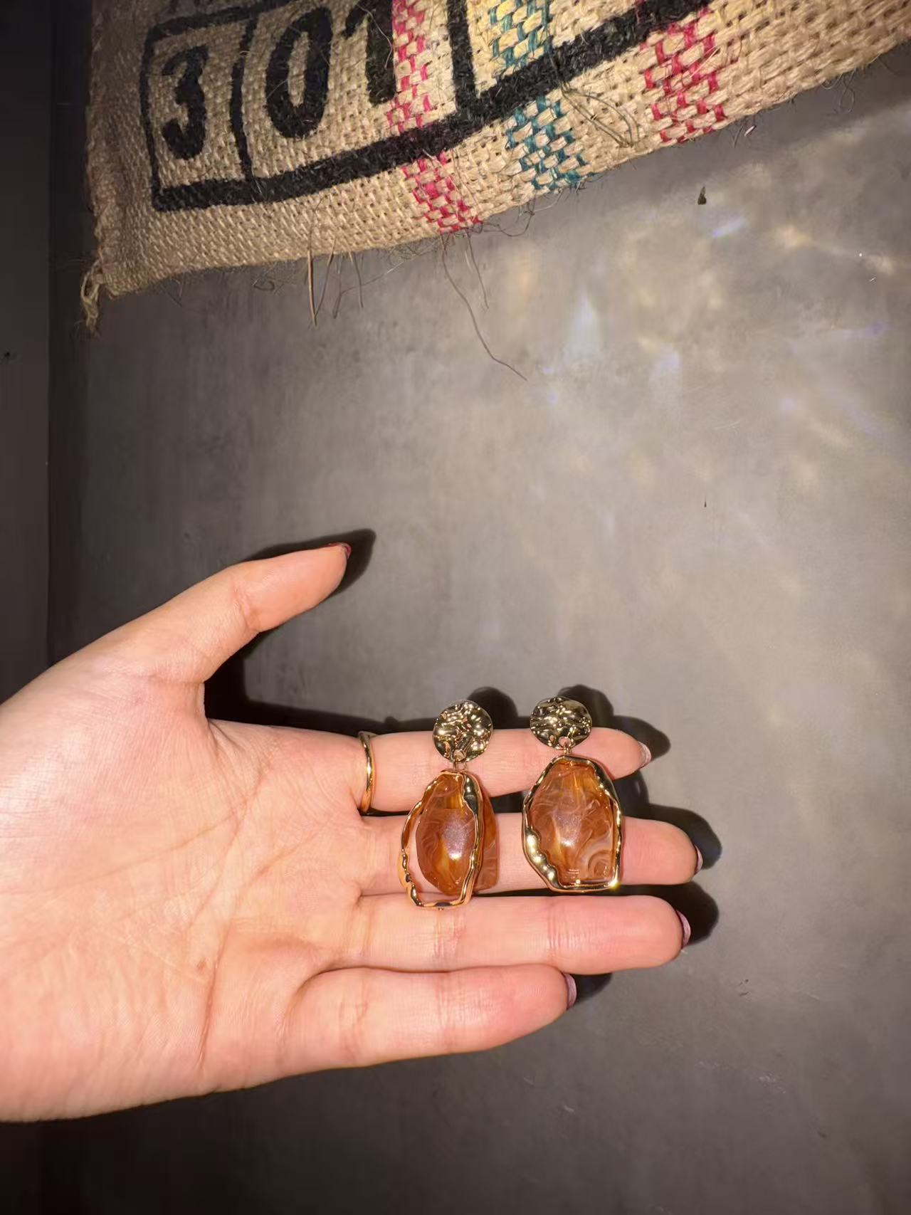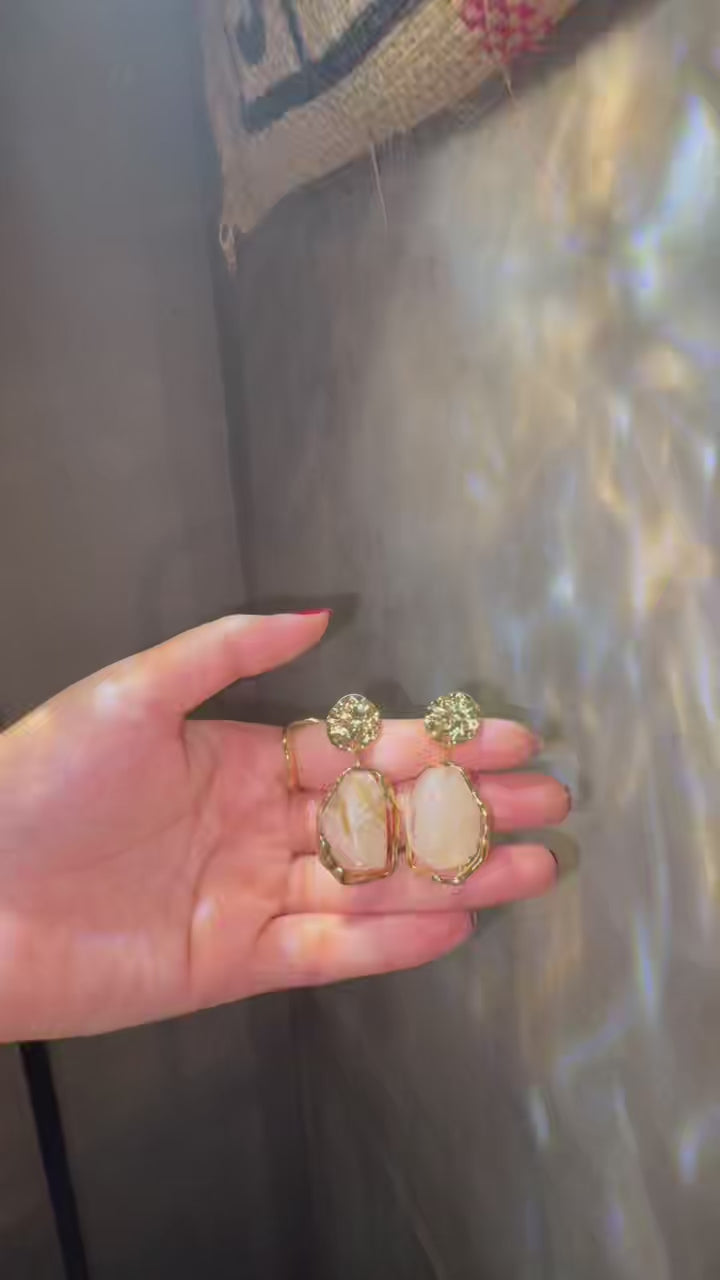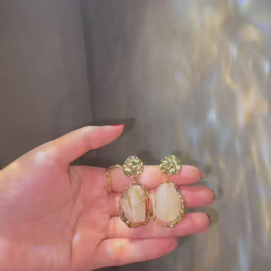 Elegant gold-plated earrings with marbled stones, adding a chic touch to any outfit. Lightweight, stylish, and perfect for daily or special looks.